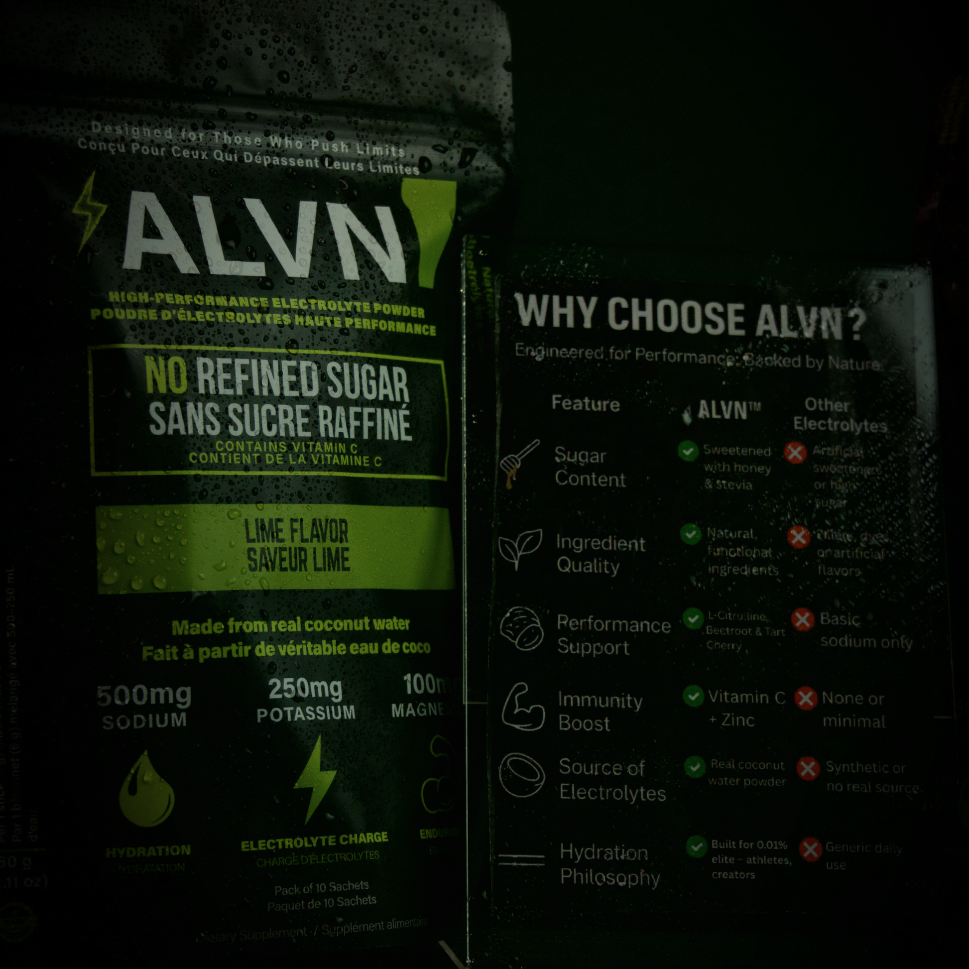 ALVN™ is built for athletes, creators, and men who move with purpose. Every stick delivers functional electrolytes and performance nutrients designed to fuel your ambitions without compromise. Experience elite hydration with zero artificial sugar and maximum performance benefits.